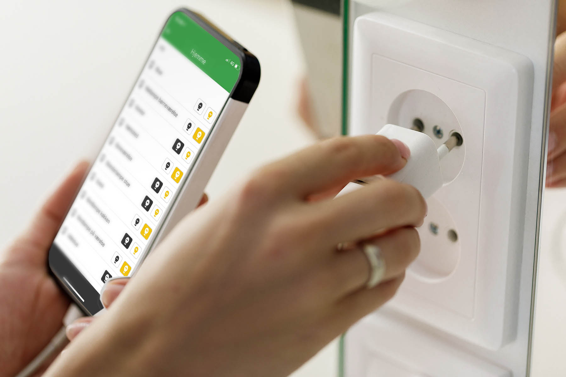 Tag de lamper og apparater du ønsker skal tilsluttes dit smart lys og tilslut dem til dine trådløse smartplugs i stikkontakten. Programmer dem ind i alarm systemet samt i din app, og du har nu smart lys, automatiske tænd/sluk-ure, samt andre smarte funktioner.