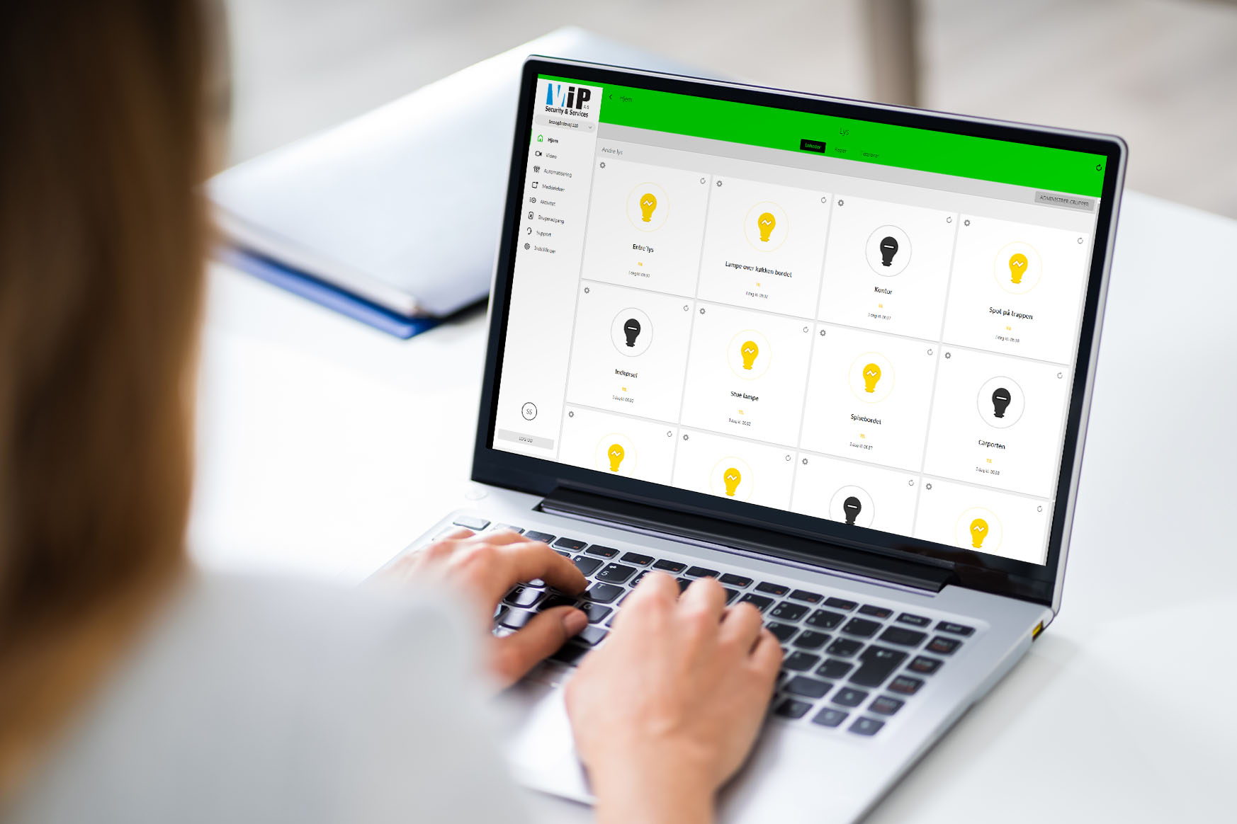 Når man forlader boligen og benytter sluk alt funktion tasten på alarm panelet, kan man eksempelvis slukke for alle lamper, kaffemaskinen samt el radiatoren for og spare strøm når men ikke er hjemme.