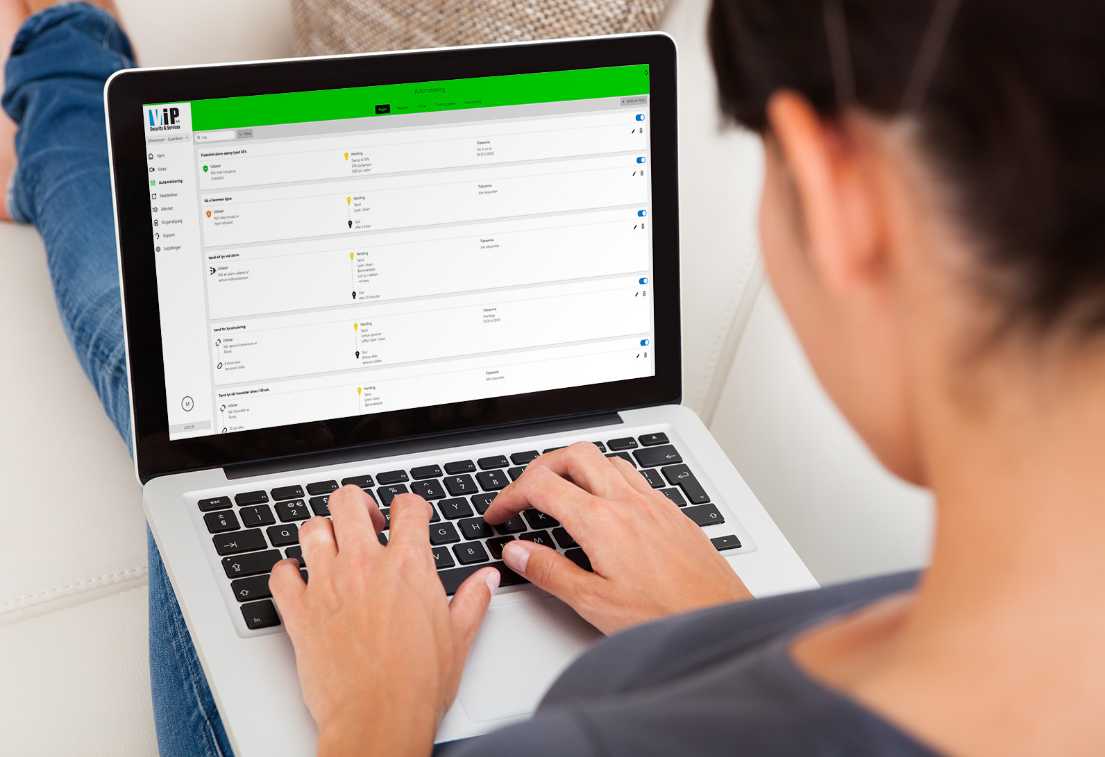 Via dit web. interface kan du tilgå alarm systemet, så du nemt lave dine helt egne smart regler på alt dit belysning og el apparater på en nem og brugervenlig måde. Der kan laves utal af forskellige smarte regler og scenarier mellem de trådløse smartplugs til alarm systemet samt kameraovervågning og dørklokken.