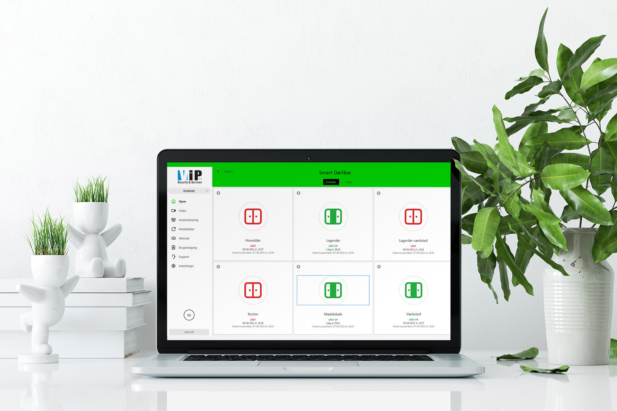 Med vores smart online adgangskontrol til virksomheden får du muligheden for og administrere alle den som skal, og ikke skal have adgang til virksomhedens forskellige områder. Du sikre dig at der ikke kommer utilsigtet personer til fortrolige områder, kontor områder samt produktionen.